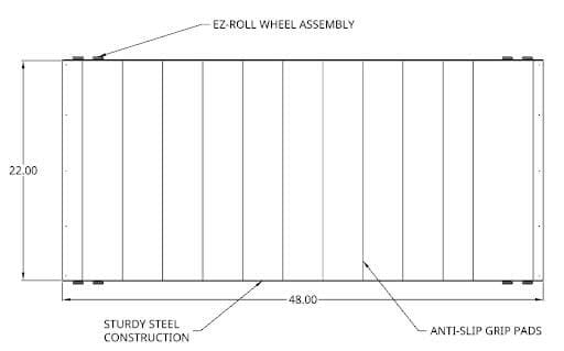 - Support for one person (300lbs) per 2’x2’ platform section