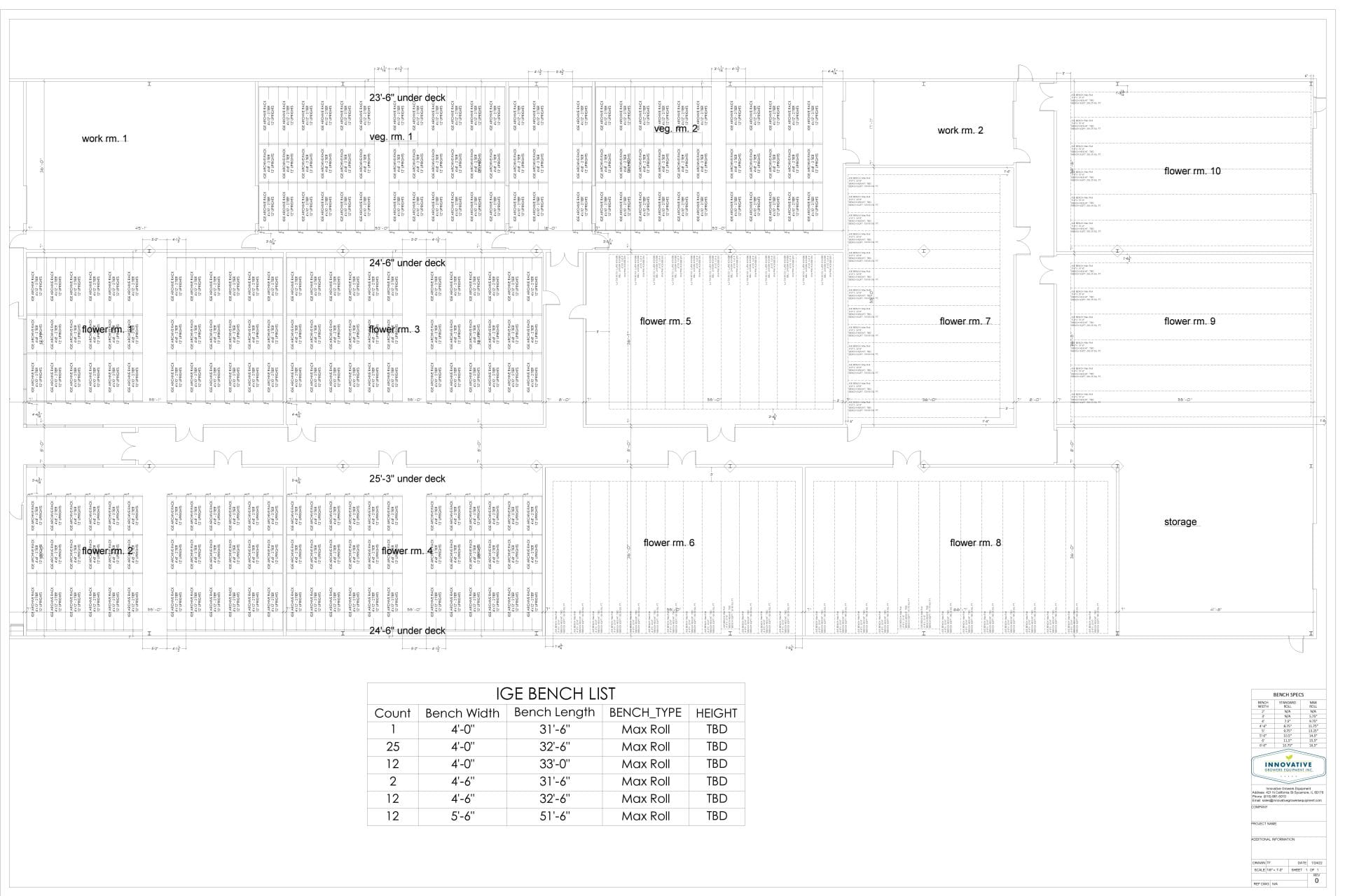 From initial layouts to detailed system integration, custom grow room design ensures that your facility operates efficiently from day one. This includes planning for lighting layouts, environmental controls, irrigation systems, and benching, all working together to support plant health and production goals.